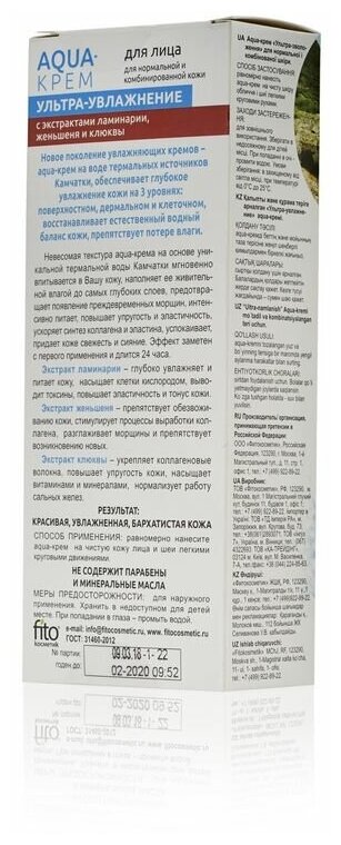 Крем для лица Fito косметик Aqua-крем для лица на термальной воде камчатки с экстрактом ламинарии, женьшеня и экстрактом клюквы «Ультра- увлажнение»