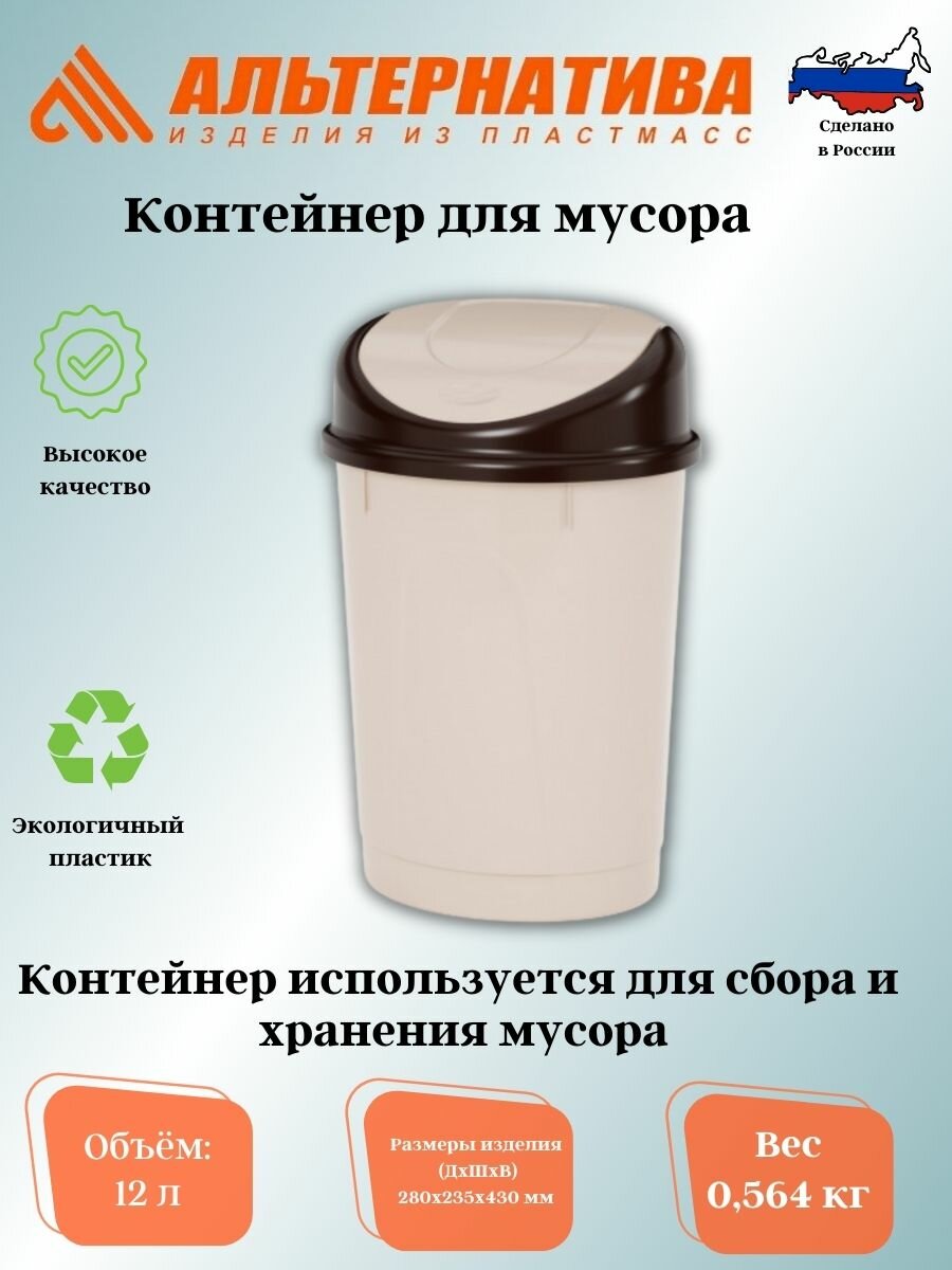 Контейнер для мусора овальный Альтернатива 12л бежевый информация: