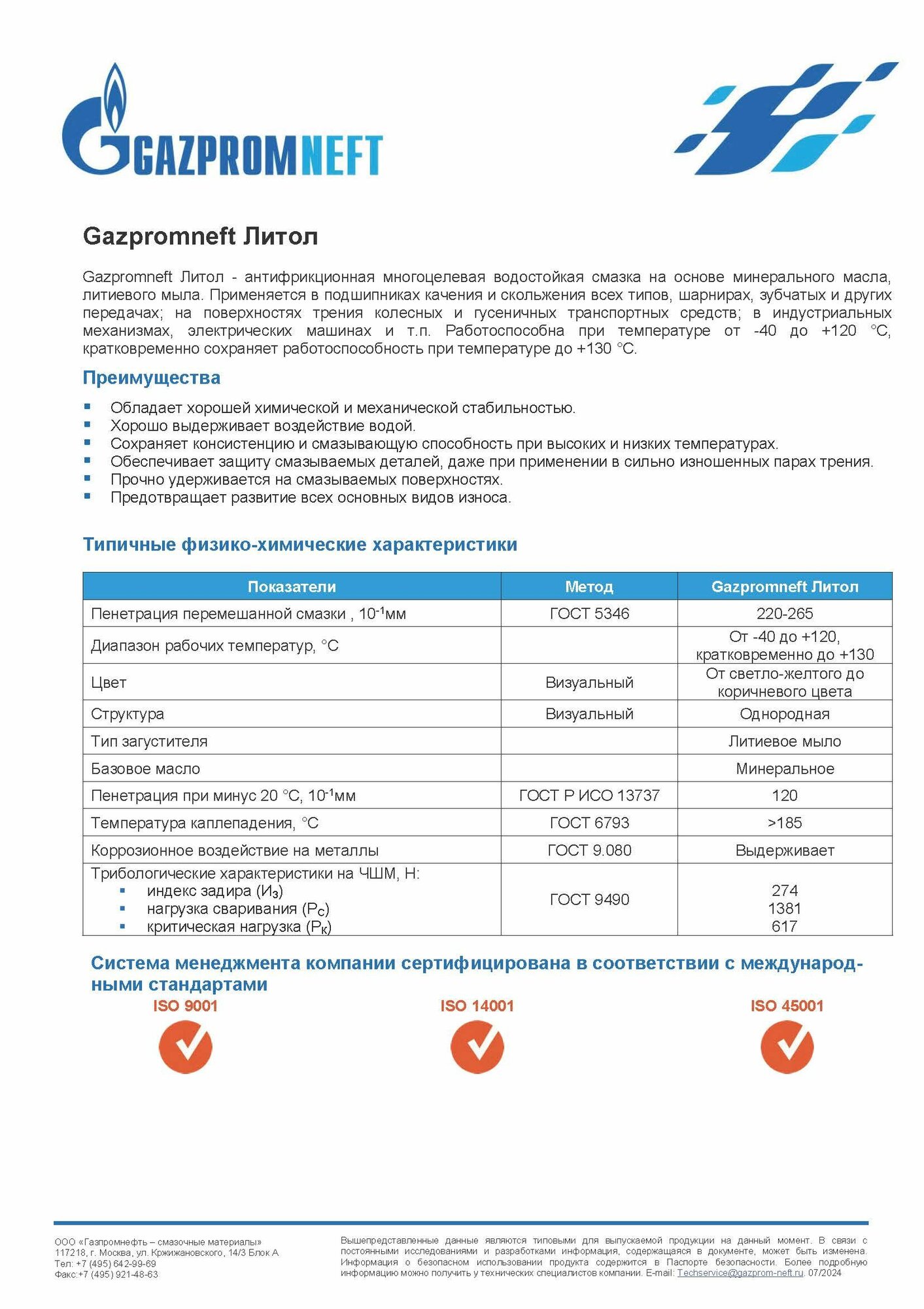 Смазка пластичная Литол-24, Gazpromneft