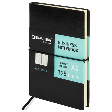 Блокнот А5 (148х218 мм), комплект 5 шт., BRAUBERG "Black Jack", 128 л., гладкий кожзам, резинка, клетка, черный, 125240 2 370 ₽