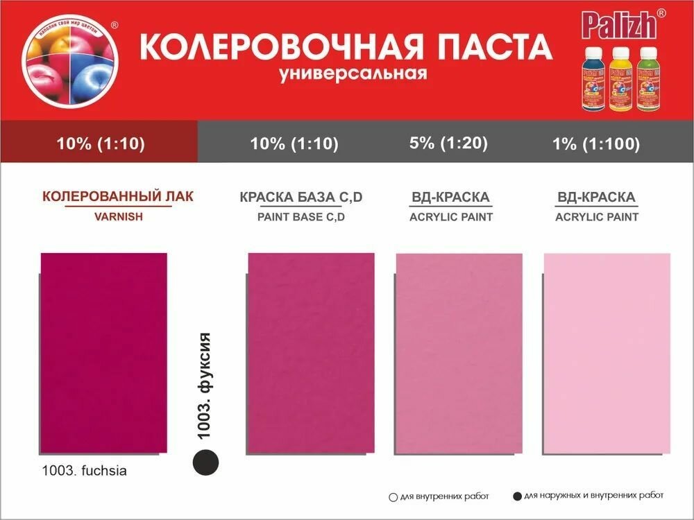 Мы выбрали 10 лучших цен на Паста колеровочная универсальная PALIZH, колер для краски, эмали, лака, фуксия 100 мл. Перед тем как купить Паста колеровочная универсальная PALIZH, колер для краски, эмали, лака, фуксия 100 мл посмотрите найденные предложения из Яндекс Маркета и других сайтов на основе XML фидов.