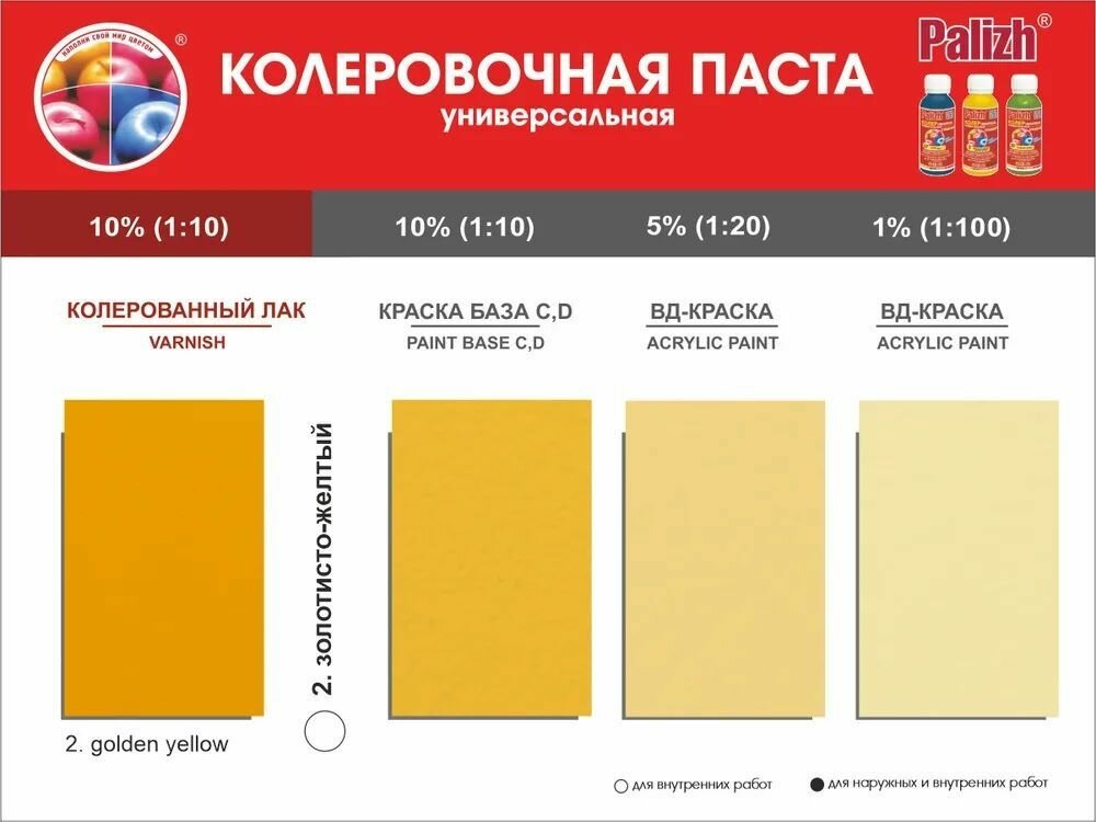 Паста колеровочная универсальная PALIZH, колер для краски, эмали, лака, золотисто-желтый 100 мл информация: