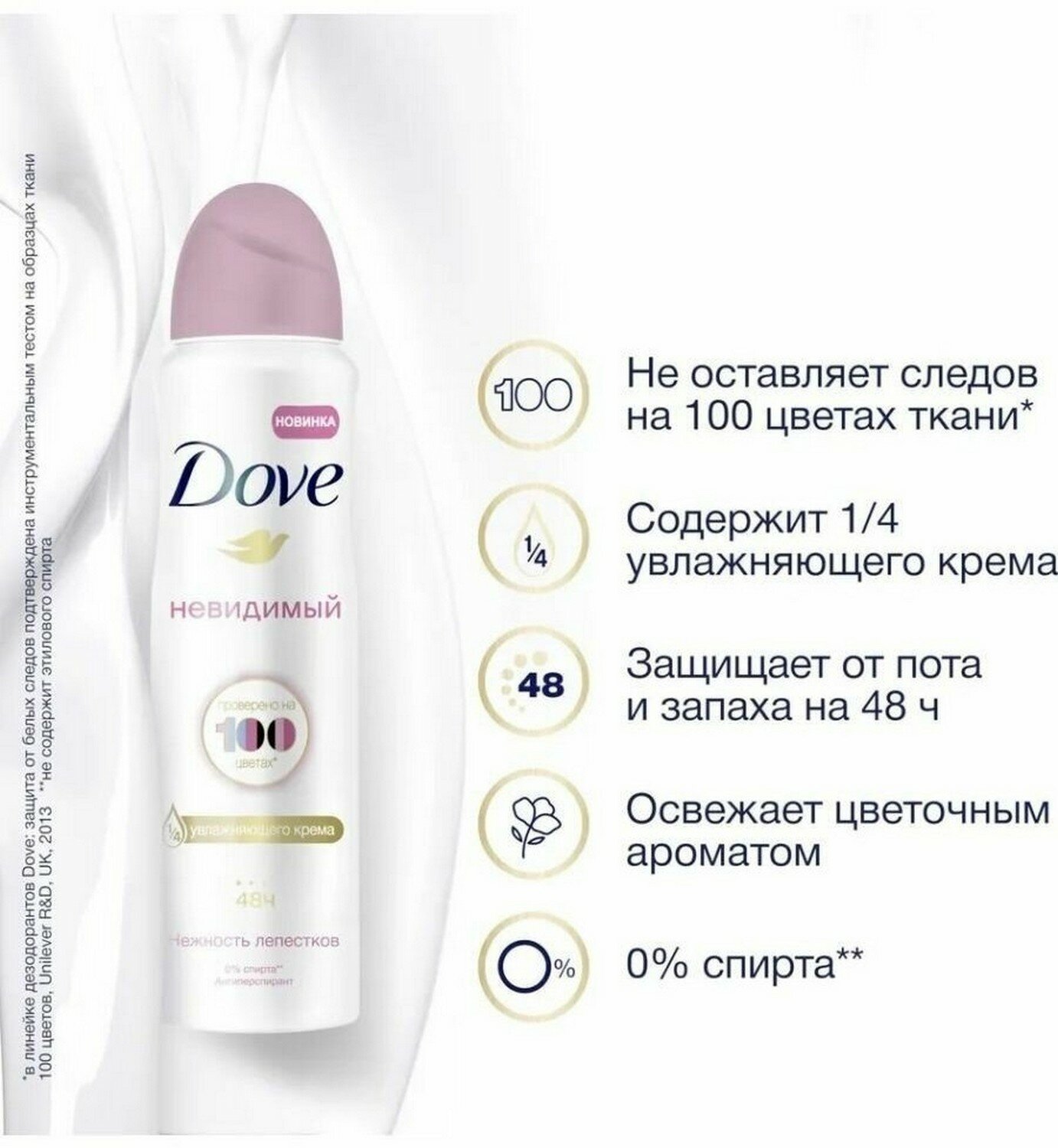 Отзывы на Dove Дезодорант-антиперспирант спрей женский Невидимый нежность лепестков 48 часов защиты 150 мл - 3 шт