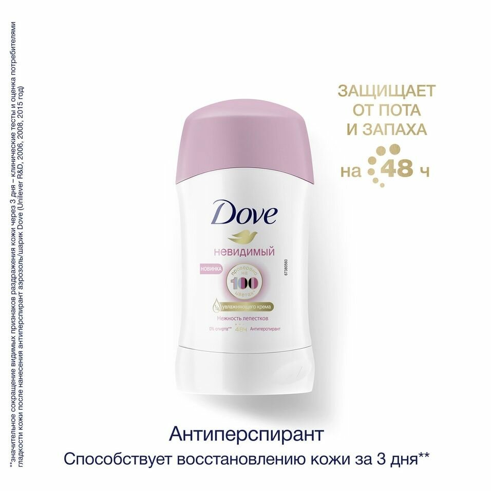 Антиперспирант-дезодорант карандаш Dove Невидимый Нежность лепестков, 40 мл, 3 шт информация:
