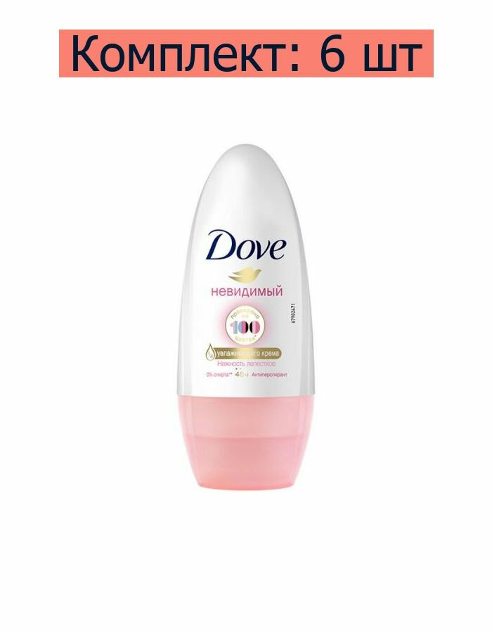10 цен на Dove Антиперспирант-дезодорант роликовый Невидимый "Нежность лепестков", 50 мл, 6 шт
