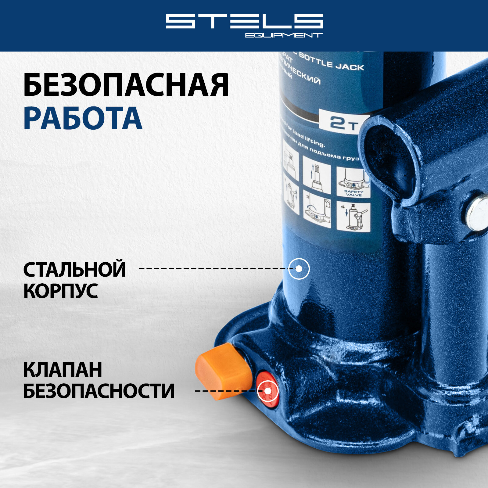 Домкрат гидравлический бутылочный Stels Equipment STELS 2 т, h подъема 178–338 мм, 51160