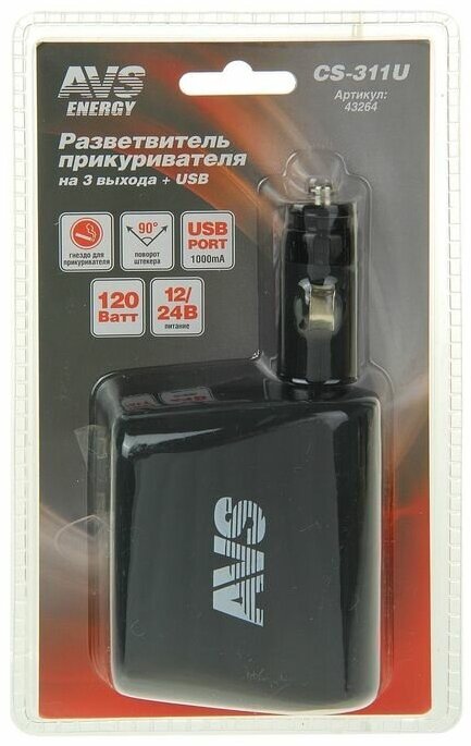 Отзывы на Разветвитель Прикуривателя Avs 12/24 (На 3 Выхода+Usb) Cs311u, Шт AVS арт. 43264