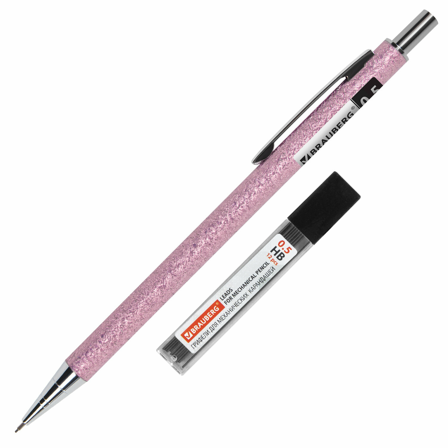 10 цен на Механический карандаш 0,5 мм + грифели Hb 12 штук на блистере, Brauberg Rose Pink, 181971