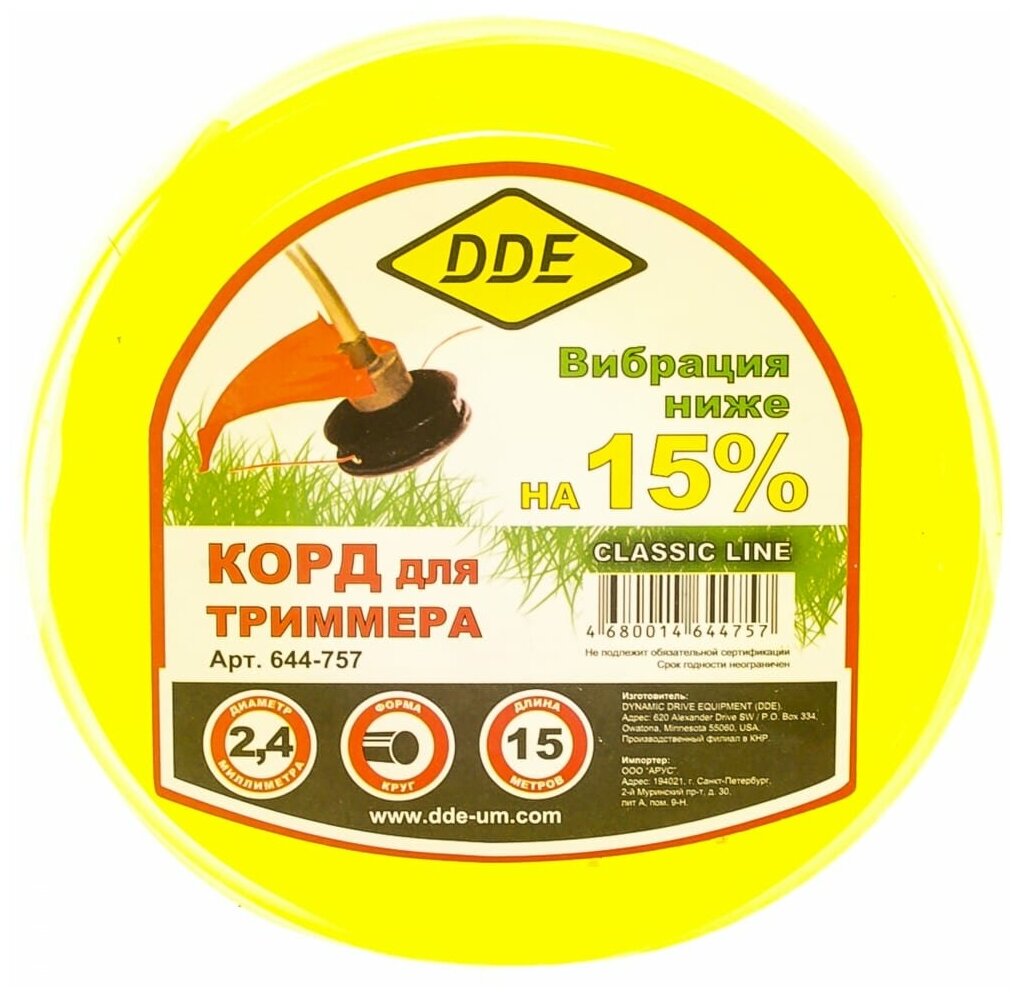 Леска триммерная DDE Classic line (2,4 ммх860 мкругжелтая) [644-801]