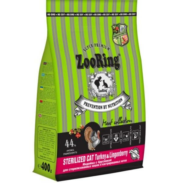 Сухой корм ZooRing Sterilized индейка с брусникой для стерилизованных кошек, 400г 316 ₽