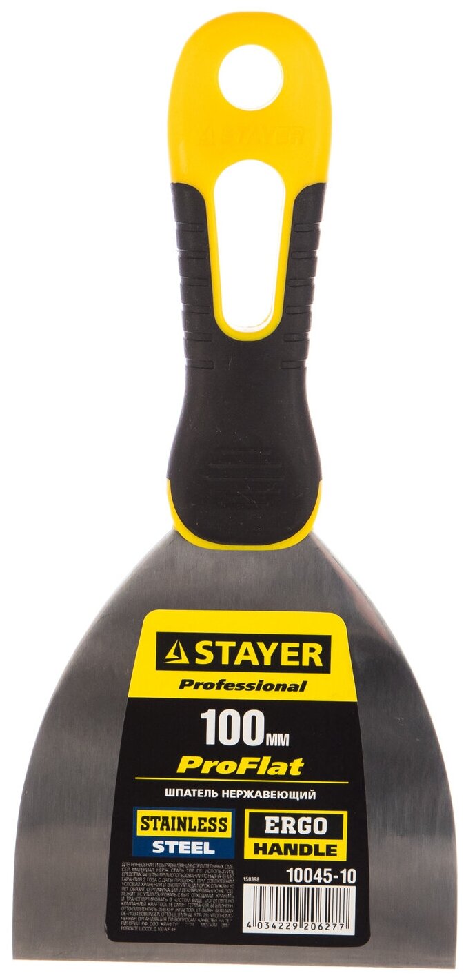 Шпатель с профилированным нержавеющим полотном и 2к ручкой 100мм STAYER PROFESSIONAL информация: