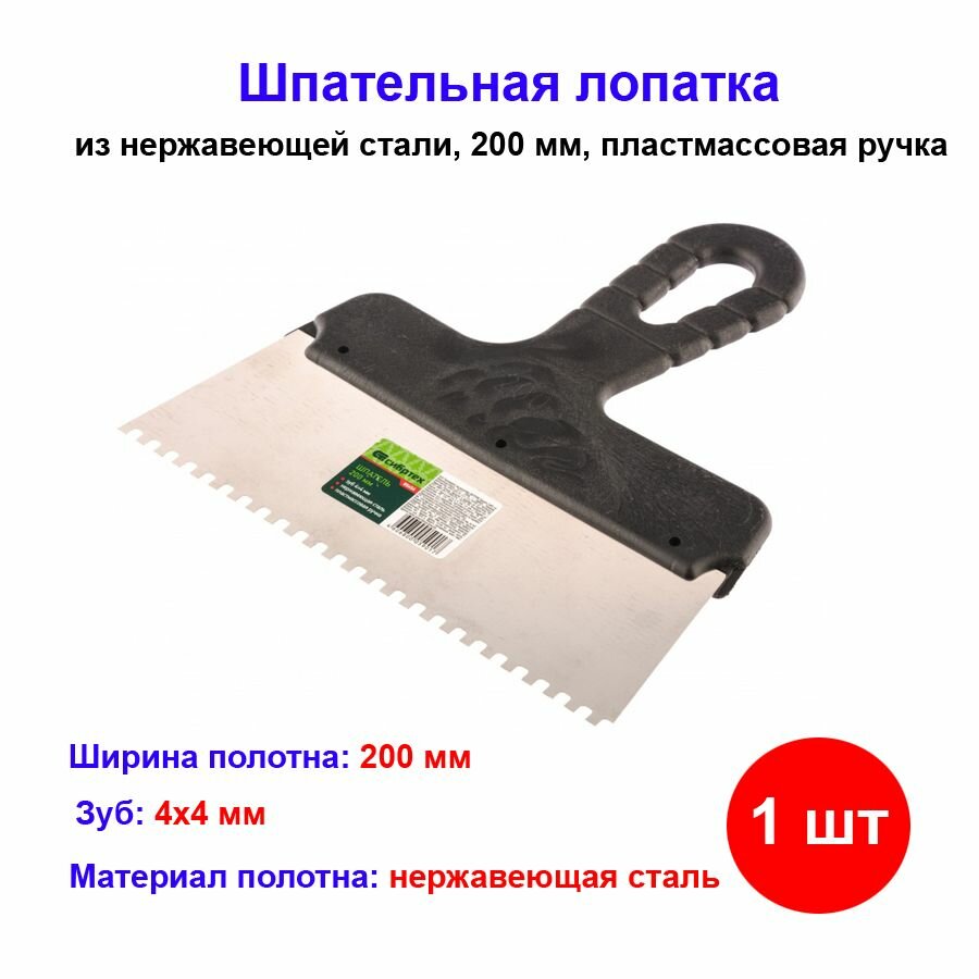 Шпатель из нержавеющей стали, 200 мм, зуб 4 х 4 мм, пластмассовая ручка информация: