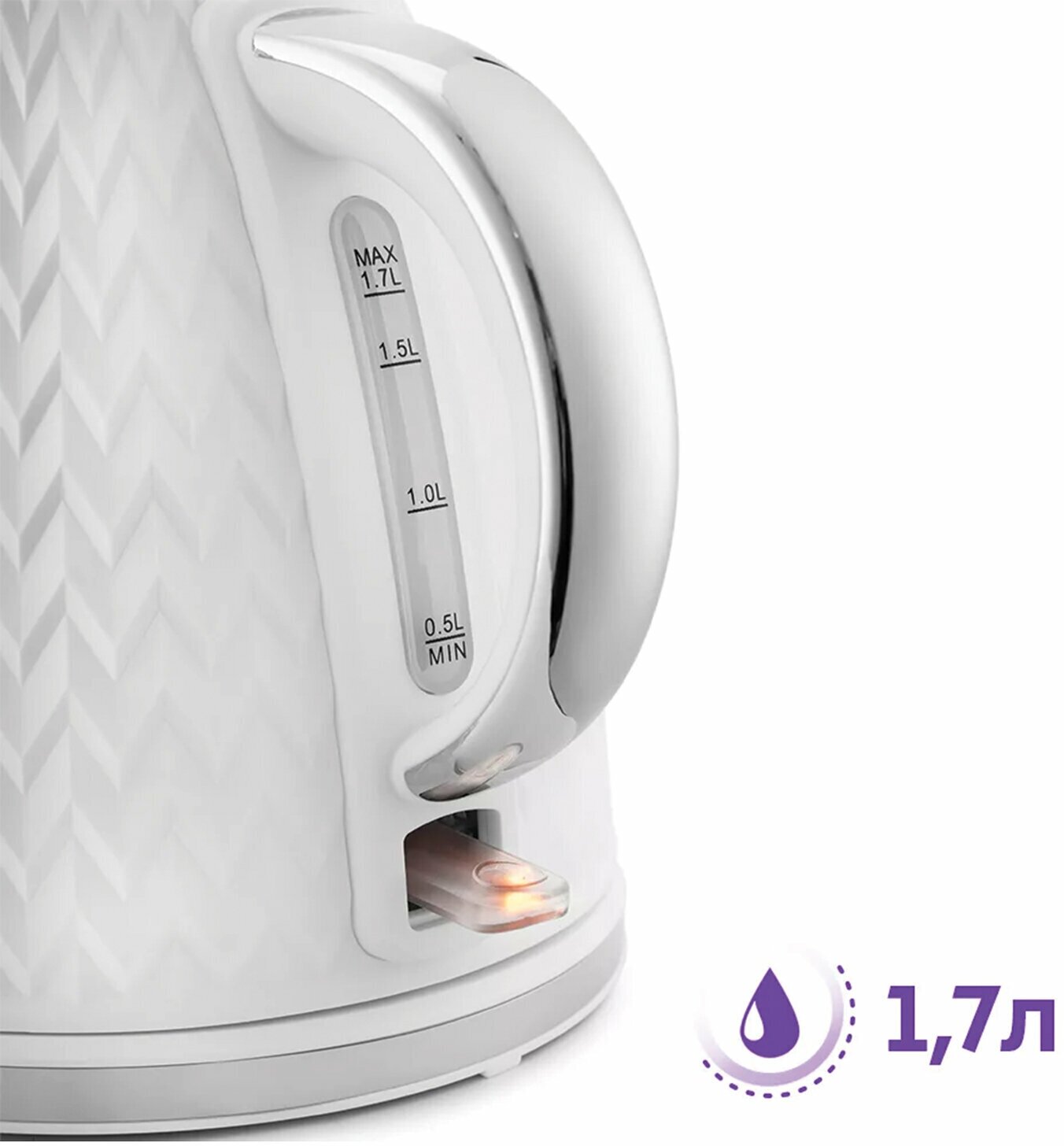 Чайник KITFORT КТ-681, 1,7 л, 2200 Вт, закрытый нагревательный элемент, пластик, белый