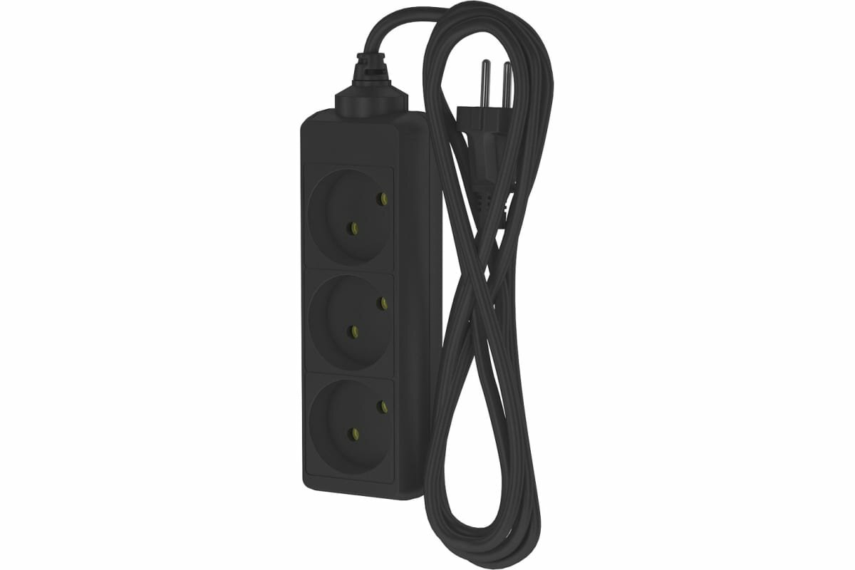 Удлинитель сетевой "фотон" 16-33Е Для дома 3м, 16А, 3 розетки с заземлением, черный 751 ₽