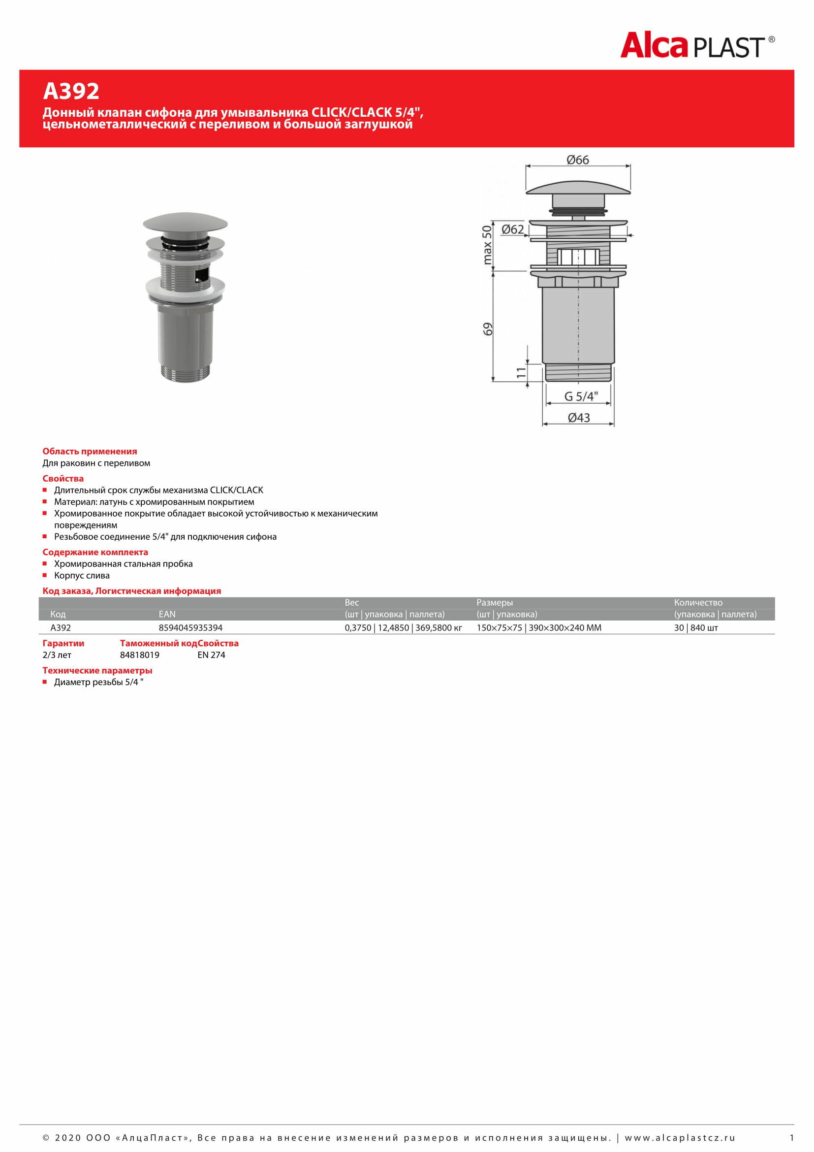 10 цен на Донный клапан для раковины AlcaPlast A392