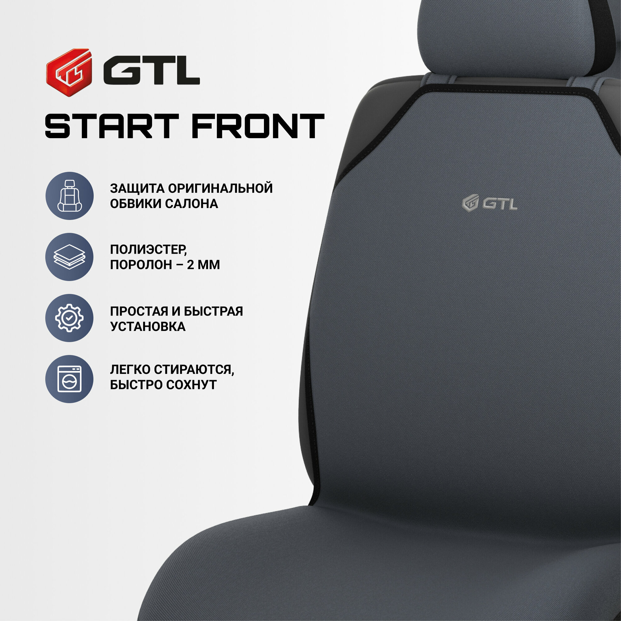 Чехлы в машину универсальные GTL Start Front (Серый), на передние сиденья 1 470 ₽