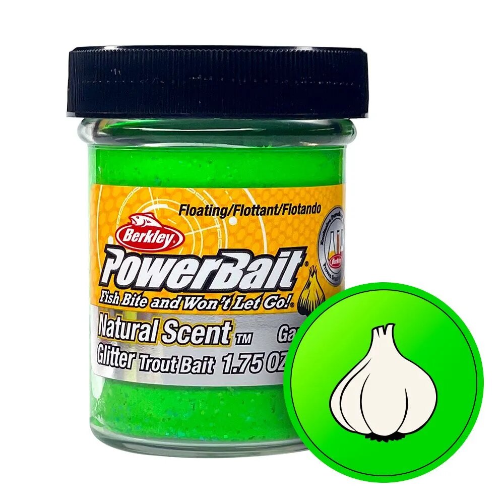 Паста форелевая Berkley PowerBait NATURAL SCENT Glitter TROUT BAIT 50gr GARLIC - SPRING GREEN