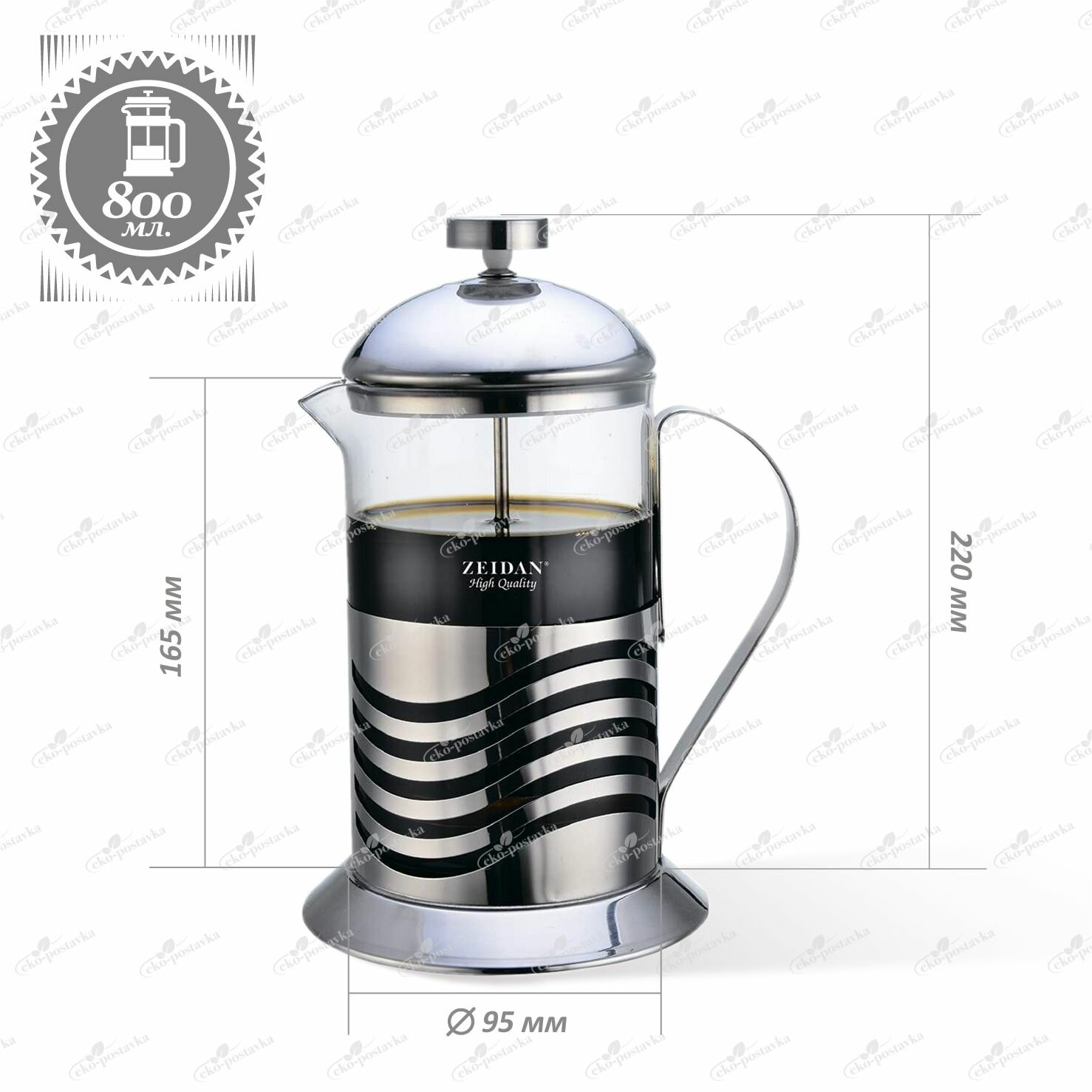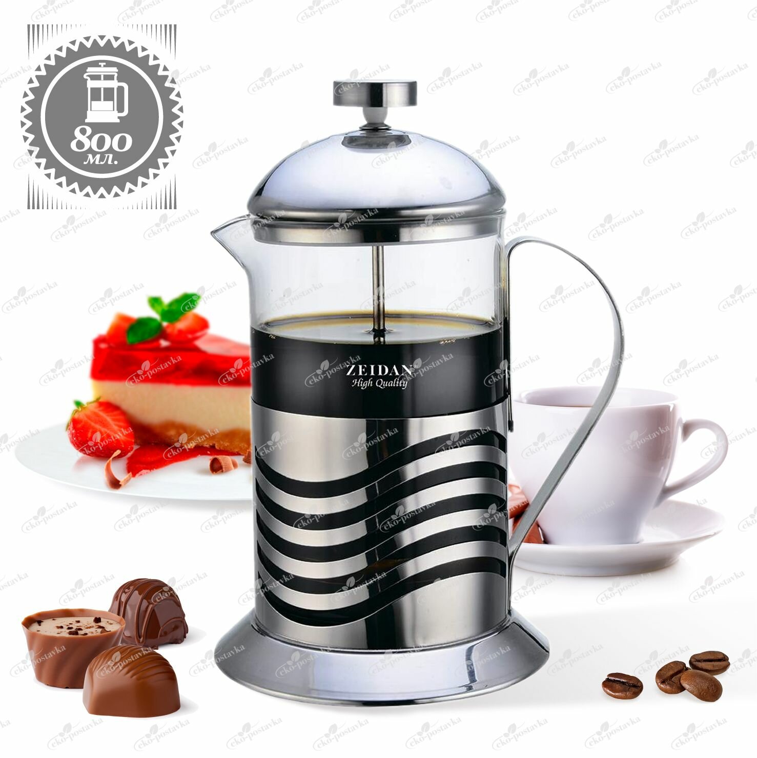Френч-пресс Zeidan колба из боросиликатного термостойкого стекла 800 мл металлическая ручка