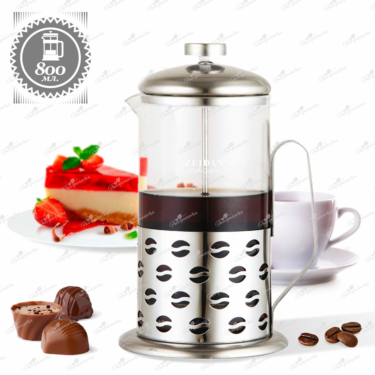Френч-пресс Zeidan со стеклянной колбой и корпусом из нержавеющей стали 800 мл 4076 информация: