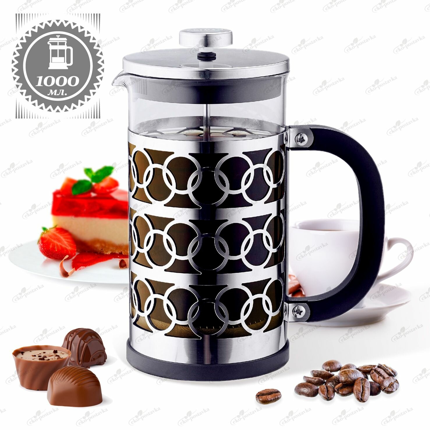 Френч-пресс прозрачный 1000 мл заварочный чайник стекло для кофе и чая Zeidan заварник стеклянный