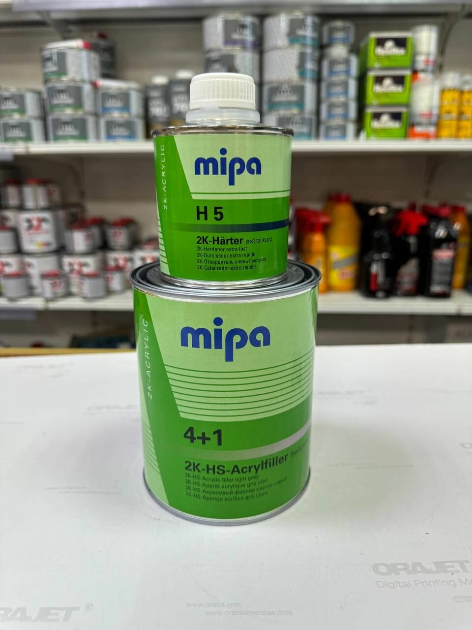 Грунт акриловый Acryfiller HS 4:1 светло-серый 1л (1,75кг) Mipa+Отвердитель H5 Hardener Extra fast (0,25л) Мипа