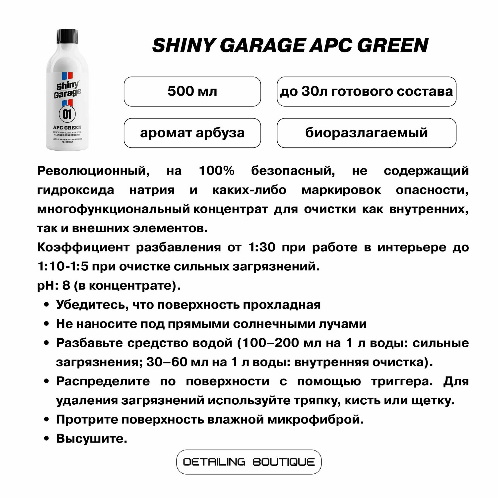 10 цен на Биоразлагаемый концентрированный универсальный очиститель Shiny Garage APC Green 500мл
