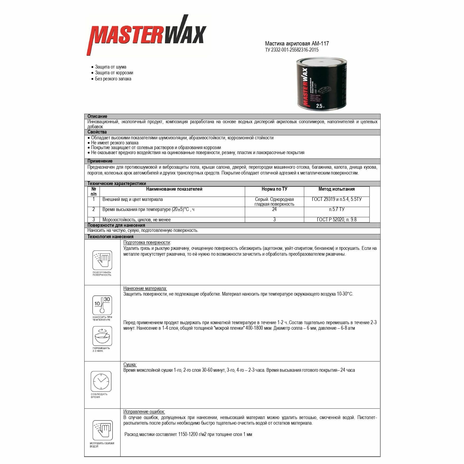 Мастика шумоизоляционная MasterWax АМ-117 1кг информация: