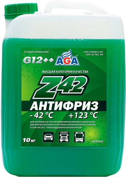 Антифриз "Aga" зеленый 10кг -42С +123С охлаждающая жидкость информация: