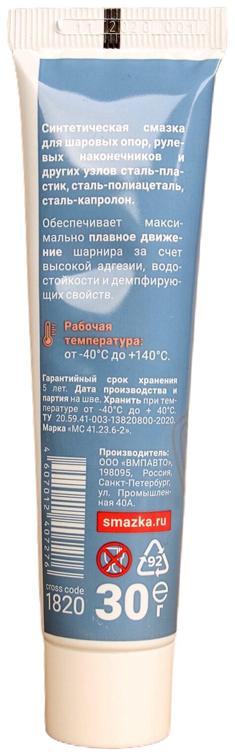 1820 Смазка Для Шаровых, 30Г Туба (30Шт/Кор) ВМПАВТО арт. 1820 информация: