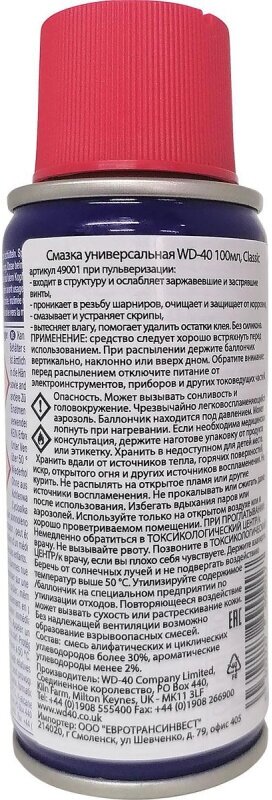 Смазка универсальная WD-40 100 мл классическая (49001) информация:
