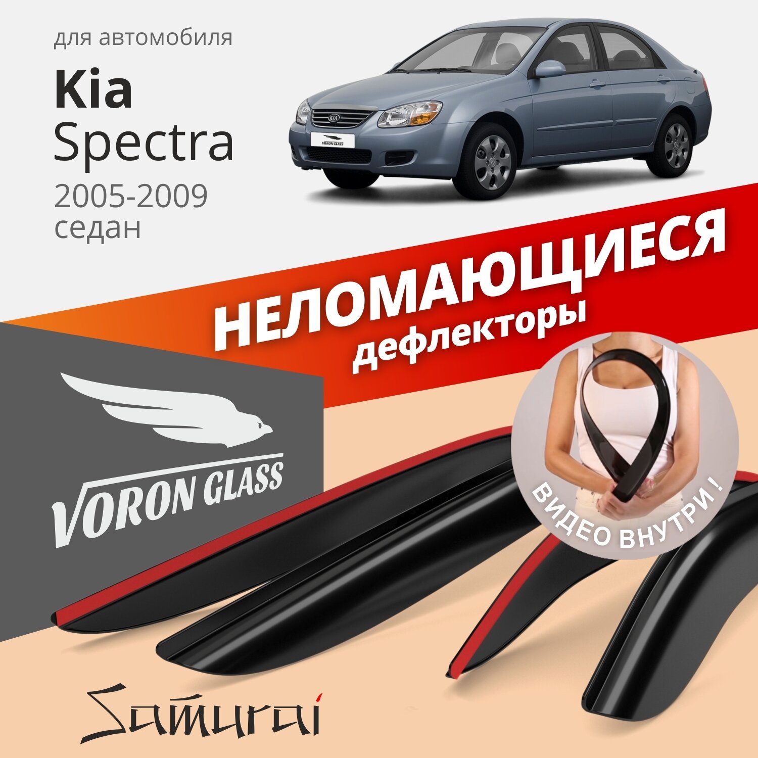 Дефлекторы окон /ветровики/ неломающиеся Voron Glass серия Samurai для Hyundai Solaris I 2011-2017 /хетчбек /накладные /к-т 4шт/