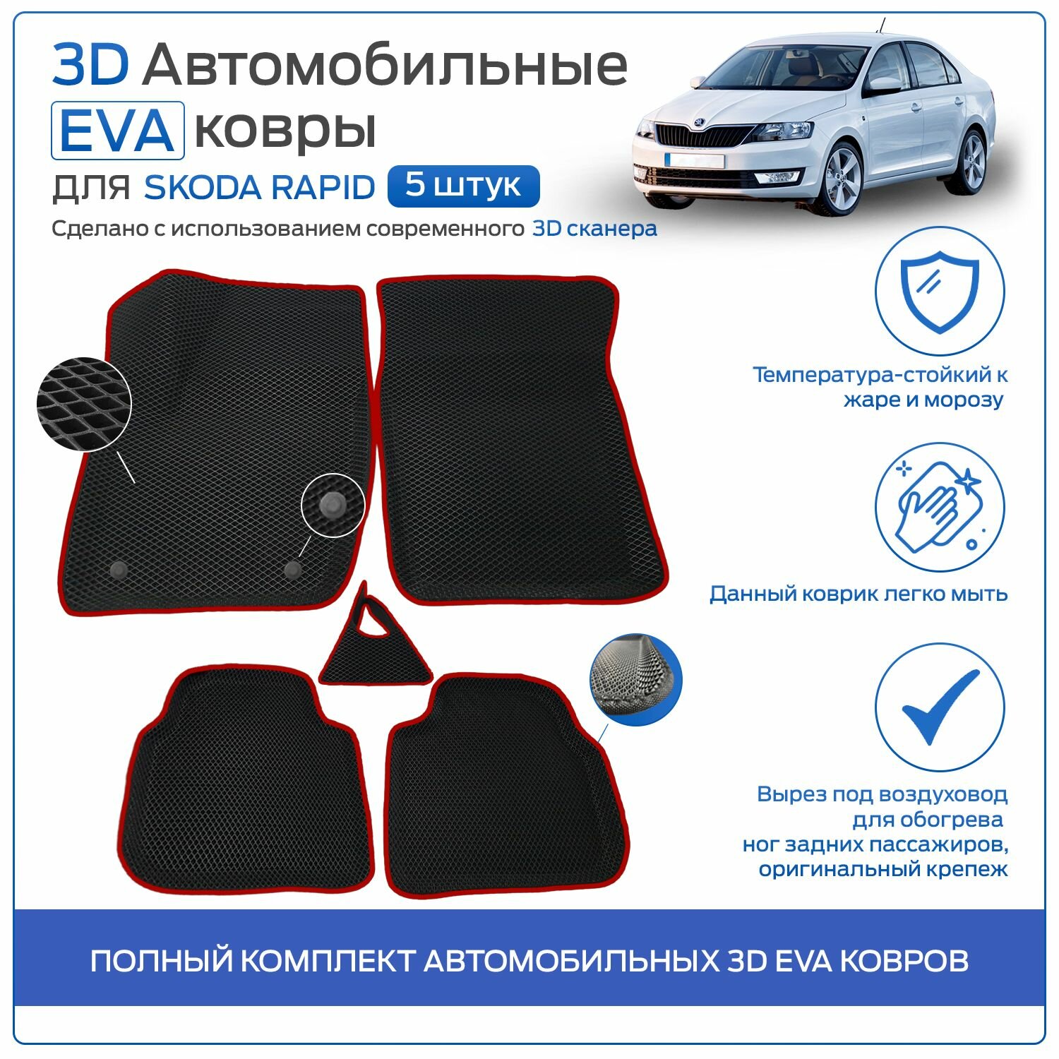 Пресс-EVA 3Д Ковры Skoda Rapid (Ева, эва, коврики с бортами) Шкода Рапид / Красные информация: