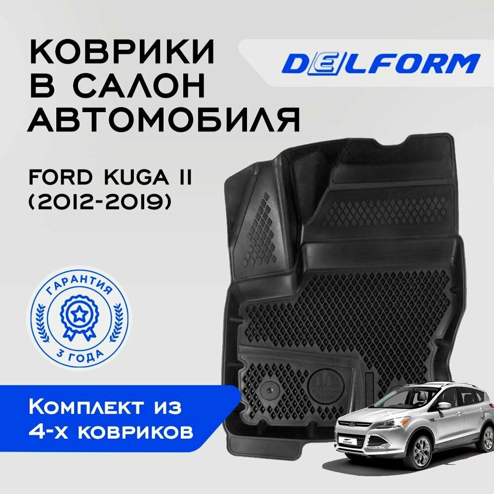 10 цен на Коврики в салон автомобиля Delform Ford Kuga II (2012-2019), Форд Куга 2 «DelForm» Премиум класса EVA-ячейками (Эва-сотами)