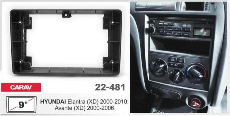 Carav 22-481 | 9" переходная рамка Hyundai Elantra (XD) 2000-2010, Avante (XD) 2000-2006 информация: