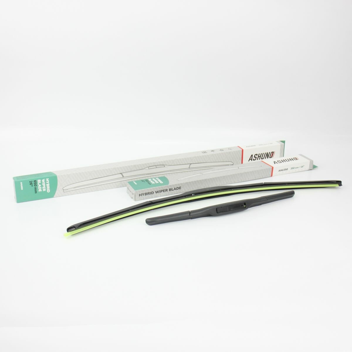 Щетки стеклоочистителя гибридные ASHUNO , комплект дворников 650 + 350 мм , крепление крючок 9х3 / Honda Fit Kia Ceed Suzuki SX4 Toyota Corolla информация: