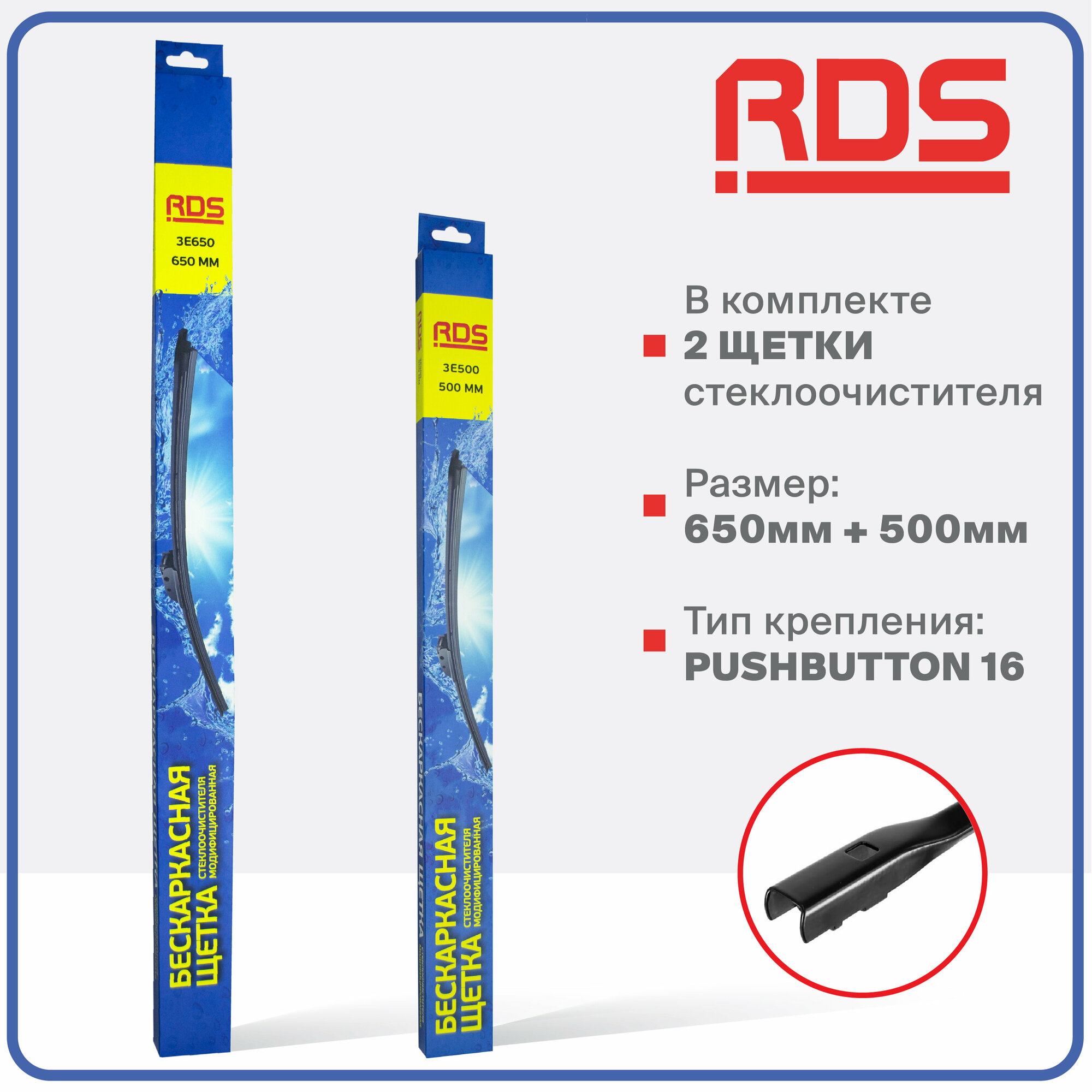 650 475 мм. Крепление Push Button 16. Комплект бескаркасных щеток стеклоочистителя RD5 дворники на AUDI A3 Limousine; Ауди А3 Лимузин; Lamborghini Urus; Ламборгини Урус; Tesla Model 3; Тесла Модел 3