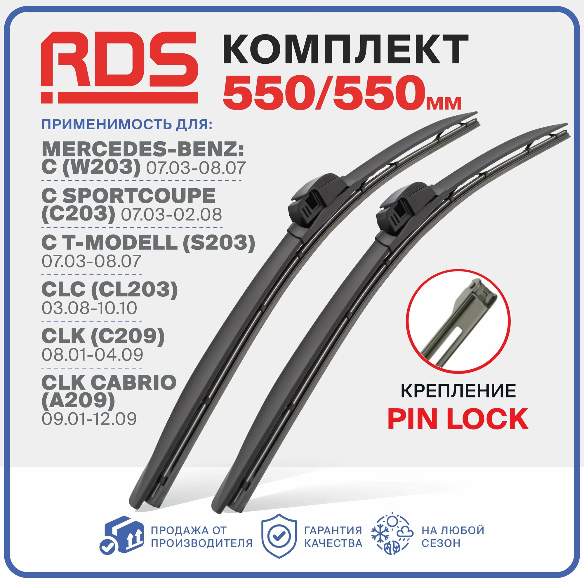 550 550мм. Pin Lock. Комплект бескаркасных щеток дворники RD5 на Mercedes-Benz C Мерседес-Бенц,C Sportcoupe Спорткупе, CT-Modell Т-Модель,CLC,CLK