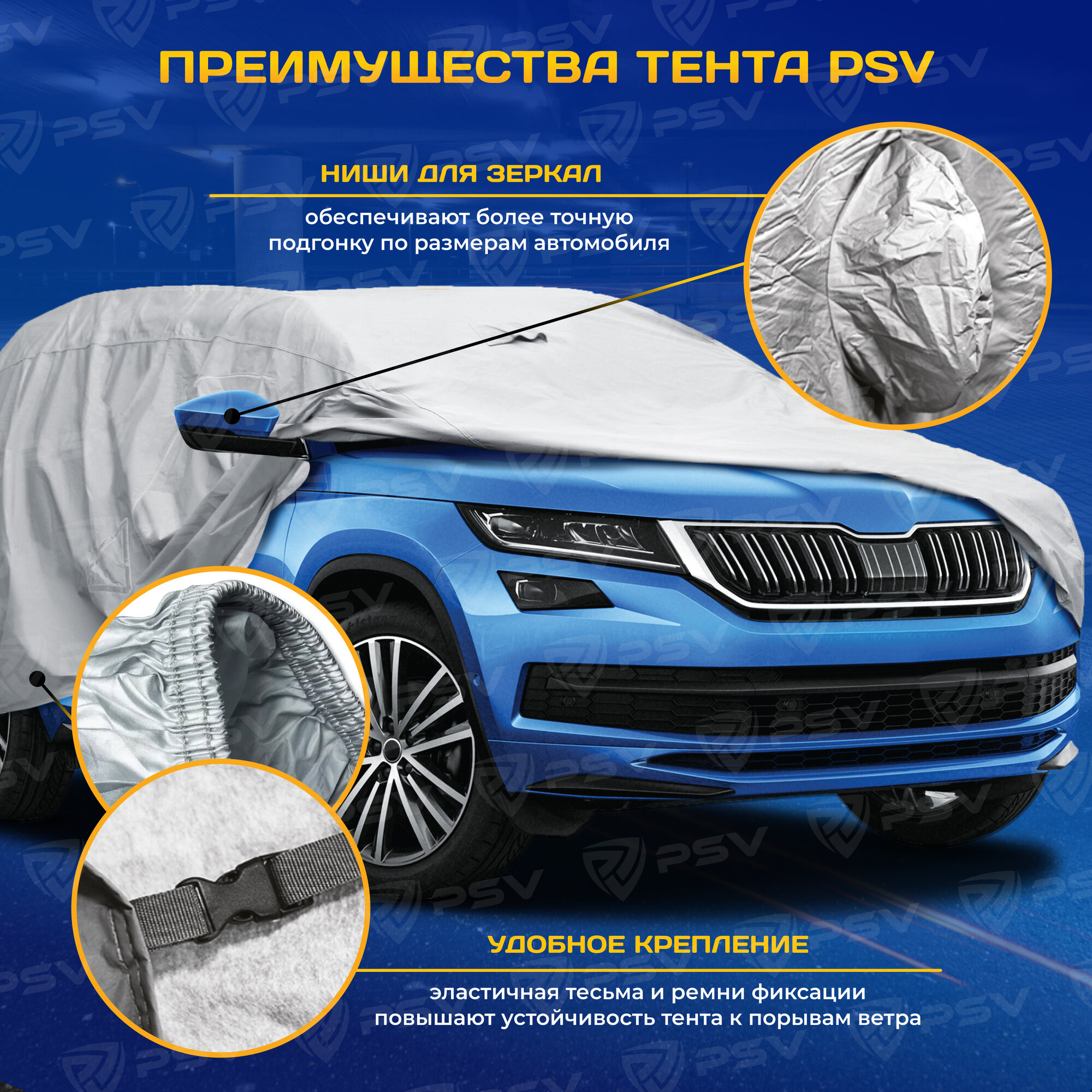 Тент на машину для кроссоверов и внедорожников PSV c молнией, размер A, 4х4, двухслойный с мягкой подкладкой 6 110 ₽