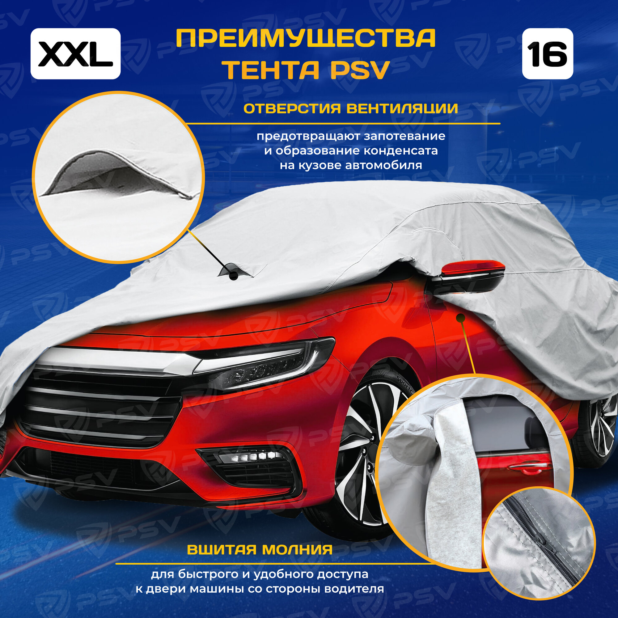 Тент на машину PSV двухслойный c молнией, с мягкой подкладкой , XL — 535 x 178 x 119 см, 111144 7 010 ₽