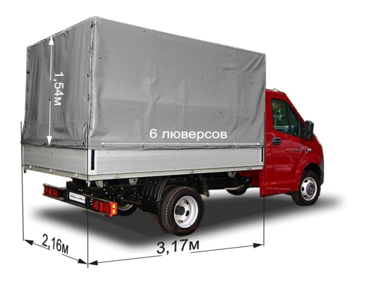 10 цен на Тент для а/м Газель Next двухсторонний ПВХ 600 гр.м2 (размер 3,17 х 2,16 х1,54, 6 люверсов алюм. борта) Цвет серый