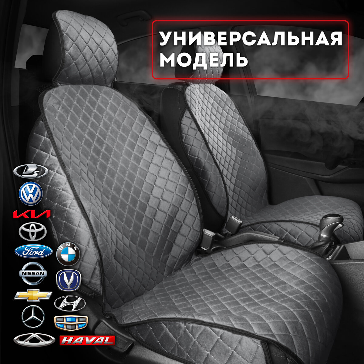 10 цен на CarCape/ Накидки на сиденья автомобиля из велюра 2 шт. Коплект накидок на передние сиденья. Модель ISTANBUL+ с боками. Темно-серый