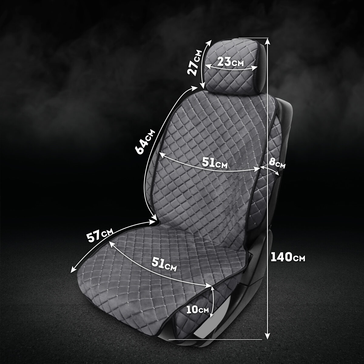 CarCape/ Накидки на сиденья автомобиля из велюра 2 шт. Коплект накидок на передние сиденья. Модель ISTANBUL+ с боками. Темно-серый информация: