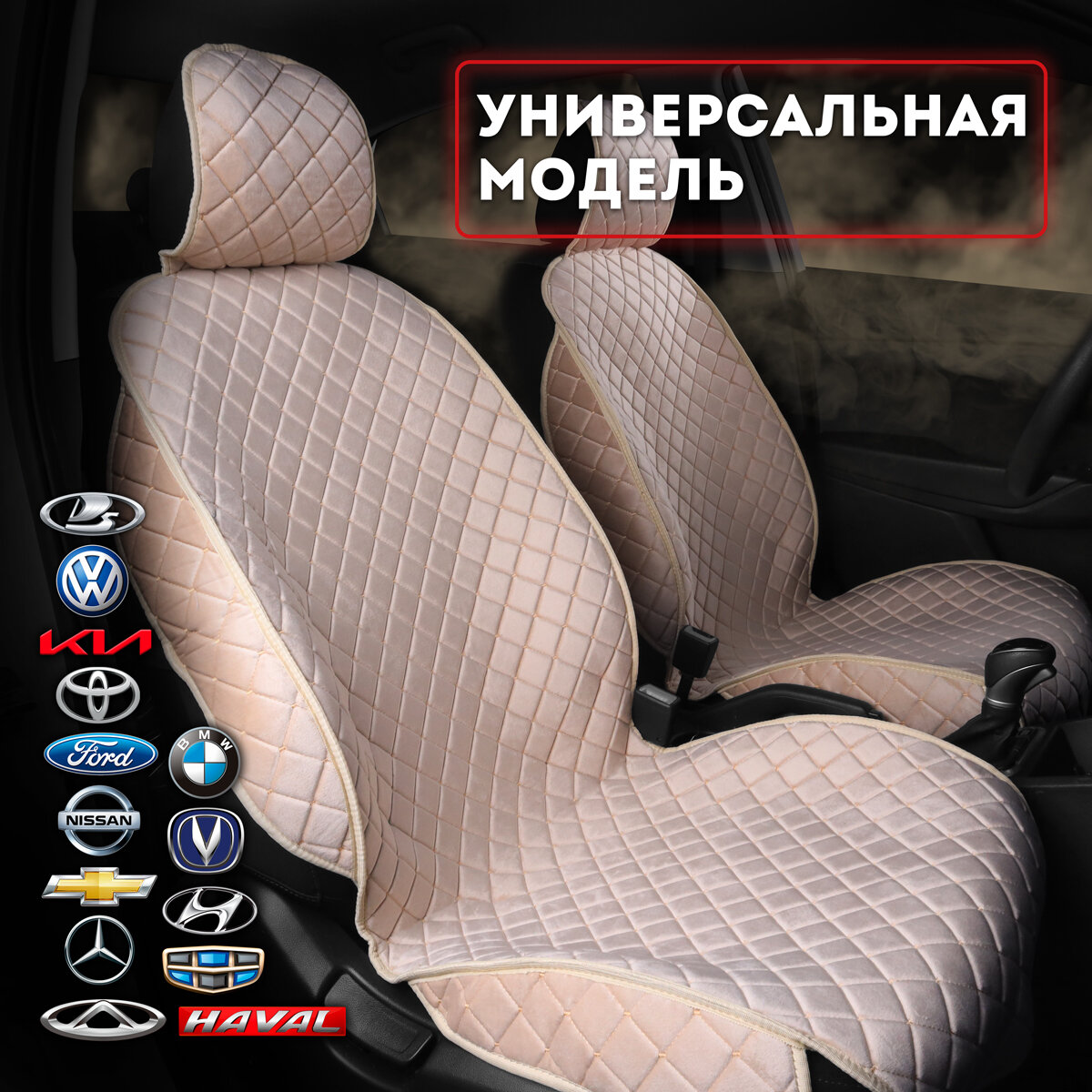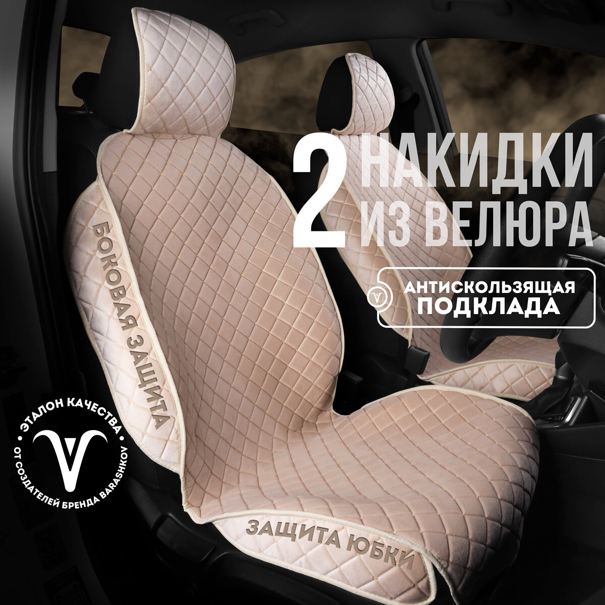 10 цен на CarCape/ Накидки на сиденья автомобиля из велюра 2 шт. Коплект накидок на передние сиденья. Модель ISTANBUL+ с боками. Бежевый