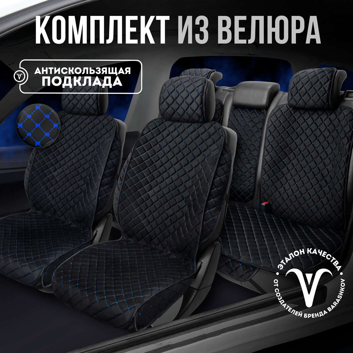 Отзывы на Carcape/Накидки чехлы на весь салон автомобиля из велюра. Полный комплект накидок. Модель ISTANBUL+ PK. Чёрный, синяя строчка