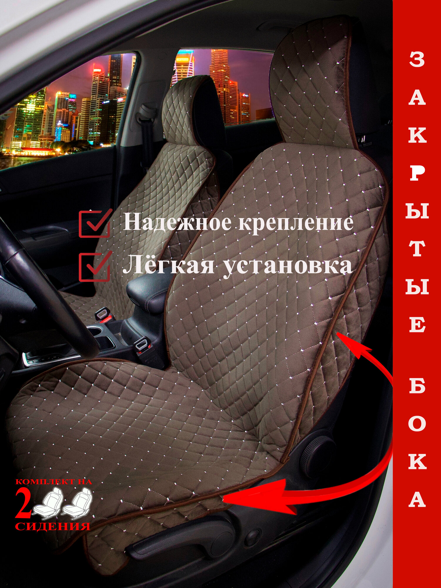 Чехлы на автомобильные сидения 2шт. Коричневый информация: