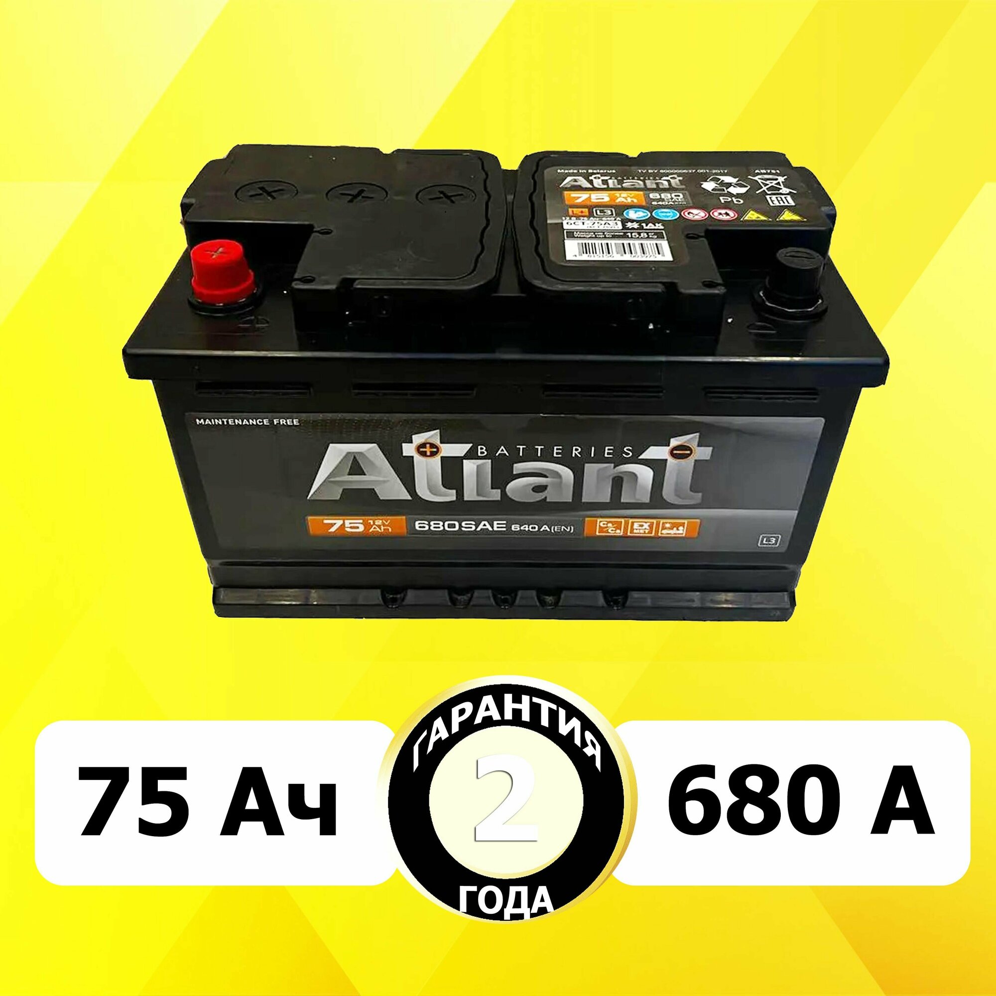 Отзывы на Аккумулятор автомобильный ATLANT Black 75 Ah 640 A обратная полярность 278x175x190