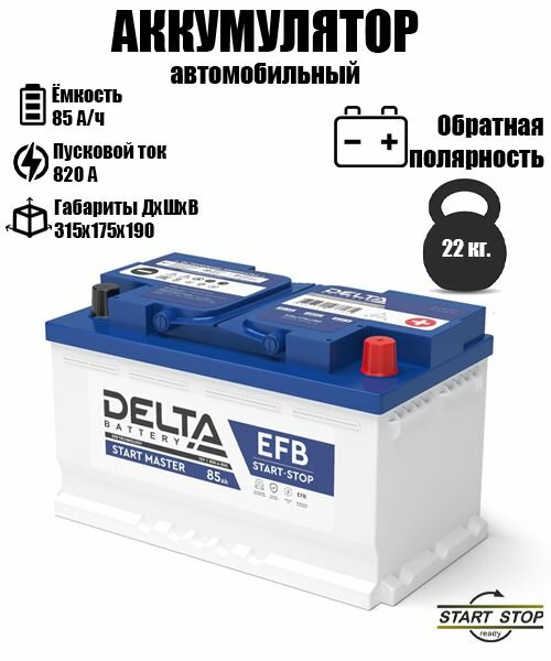10 цен на Аккумулятор DELTA EFB 1285 Start-Stop (12В 85Ач 820А 315х175х190) обр.пол.