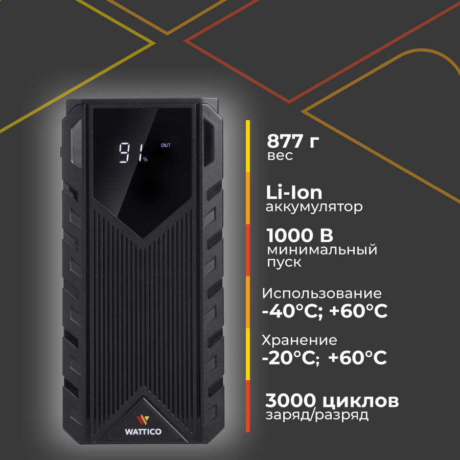Отзывы на Пуско-зарядное устройство для автомобиля Wattico Jump Starter Quick Charge 2000 А