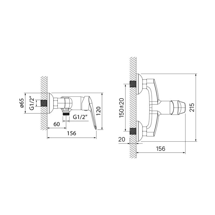 Смеситель на раковину настенный Эверест B46-350 с круглым поворотным изливом, кран-буксы 1/2", хром