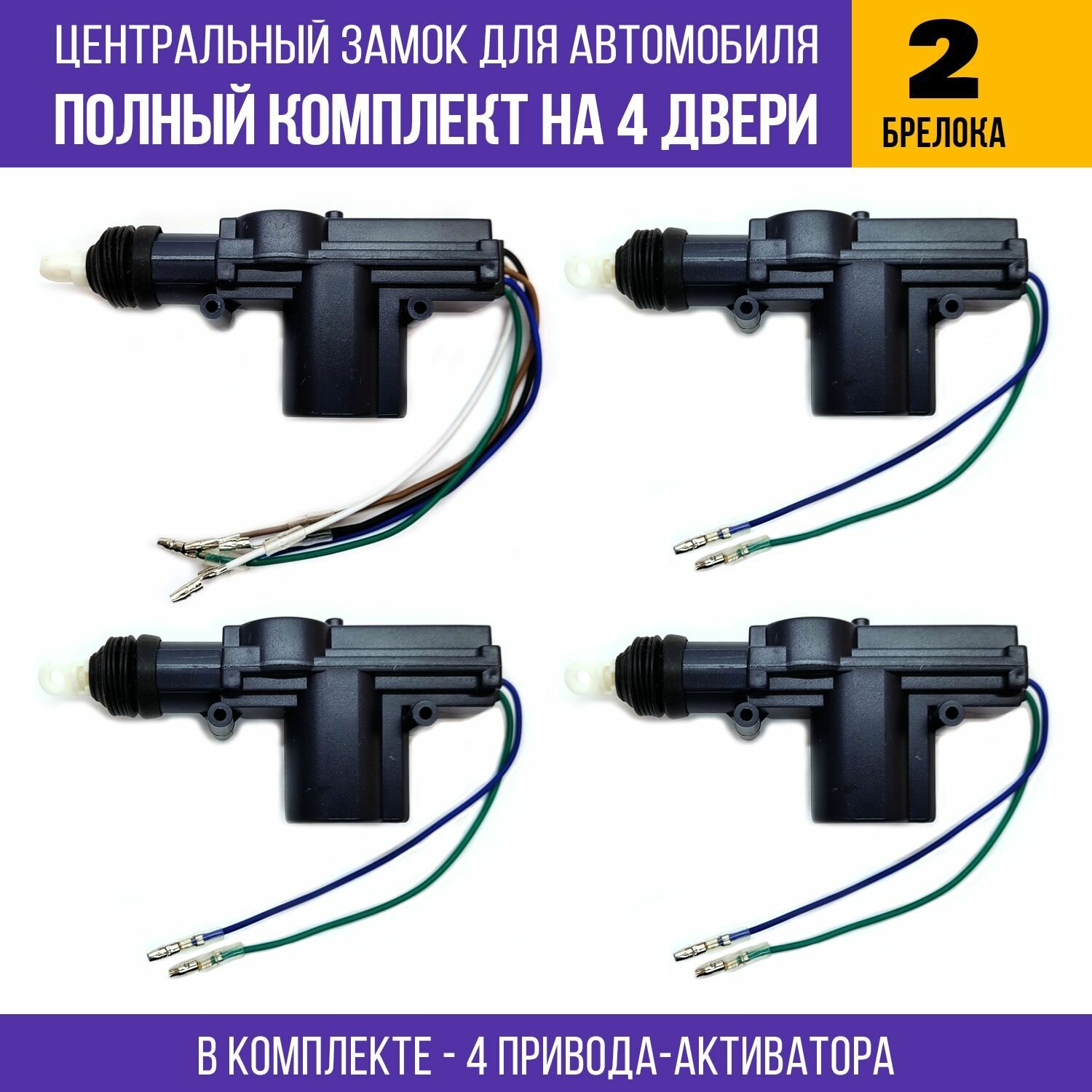 Центральный замок для автомобиля - полный комплект для установки на 4 двери (4 привода, 2 брелока) информация: